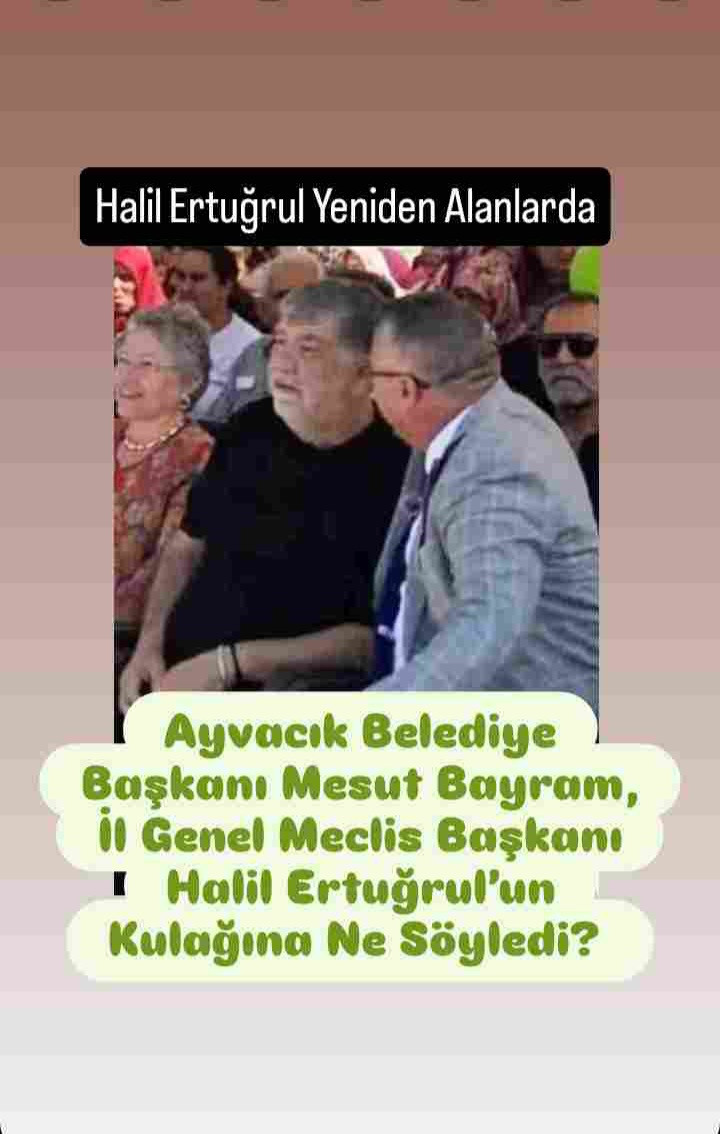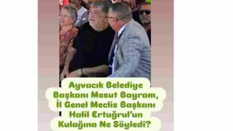 Ayvacık Belediye Başkanı Mesut Bayram'ın; İl Genel Meclisi Başkanı Halil Ertuğrul'un kulağına ne söylediği ise kulislerde merak konusu oldu.