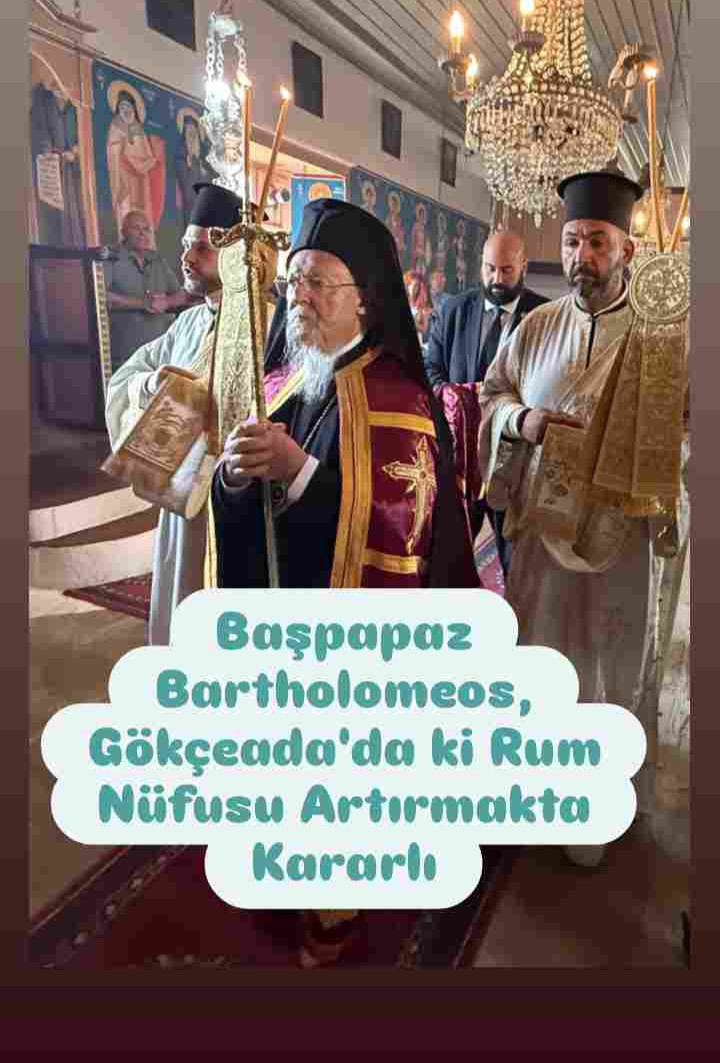 Gökçeada'da Meryem Ana 'nın göğe yükseliş töreni bağlamında yapılan ayinde konuşan, Fatih Kaymakamlığına bağlı Fener Rum Kilisesi'nin Başpapazı Bartholomeos, yine bir CİA projesi olan dinler arası diyaloğun gerekliğine dair bir konuşma yaptı ardından ise, Gökçeada'da ki Rum nüfusu artırmak için yaşama geçirmeyi planladıkları projelerden söz etti.