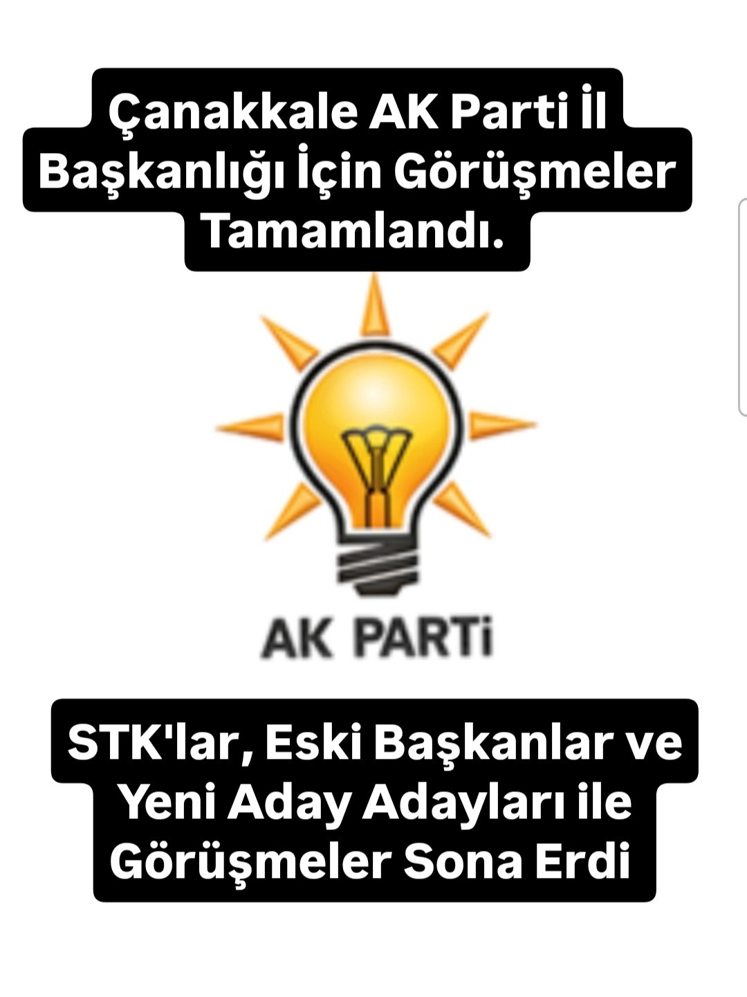 Geçtiğimiz gün AKP İl binasında STK'lar Eski Belediye Başkanları ve Yeni İl Başkan adayları ile AKP Çanakkale Sorumlusu ile AKP Marmara Bölge Sorumlusu Haydar Ali Yıldız görüşme yaptığı öğrenildi.