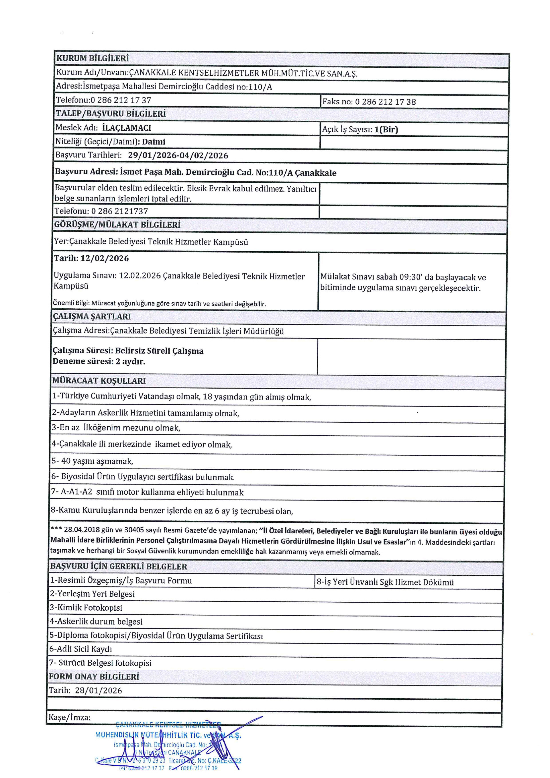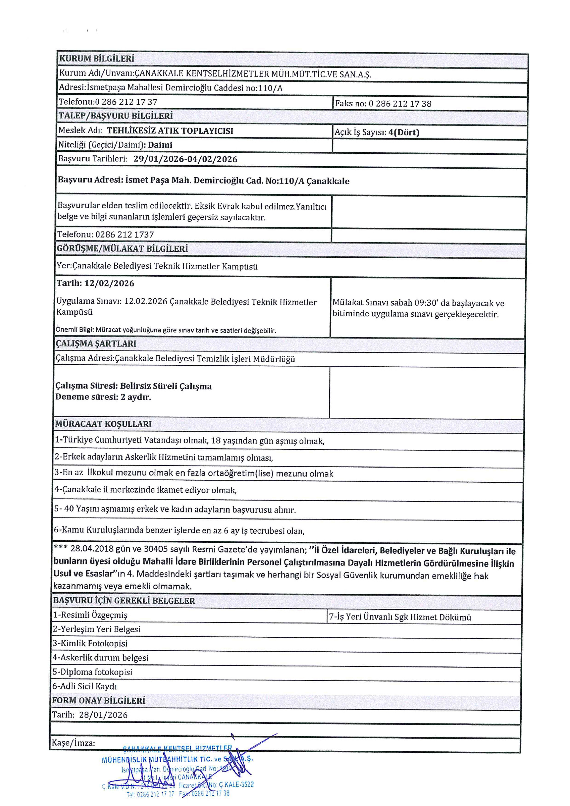 Çanakkale Hizmet Grupları Geçici 7 İşçi Alacak. Son başvuru tarihi 4 Şubat 2026