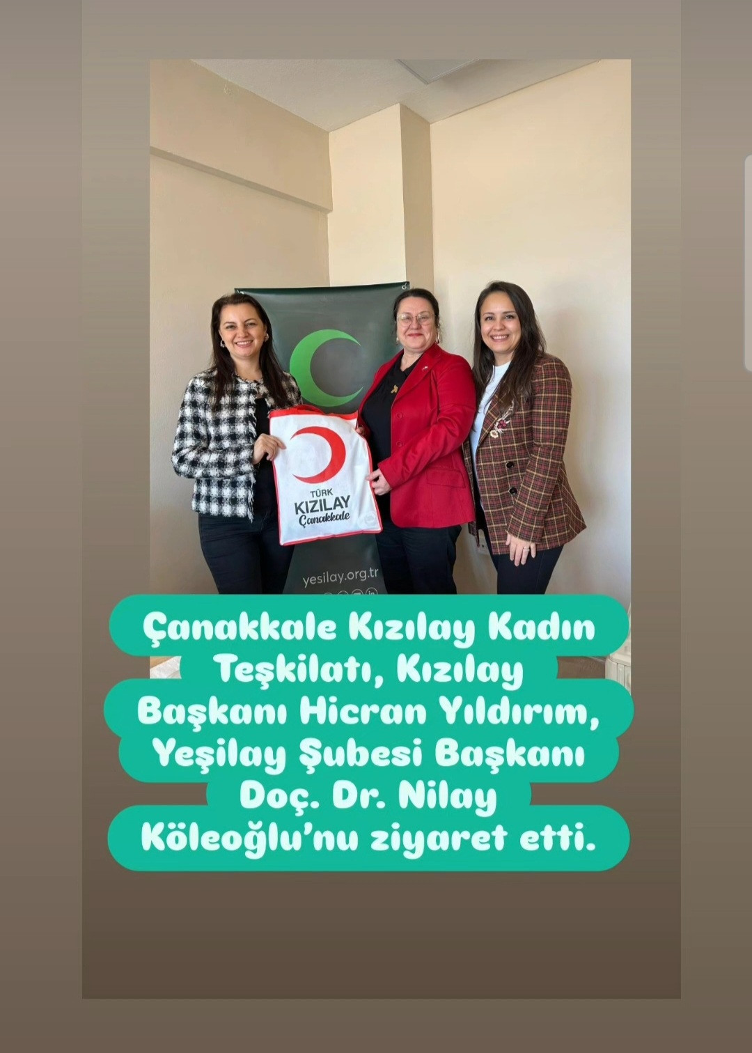 Çanakkale Kızılay Kadın Teşkilatı , Kızılay Kadın Başkanı Hicran Yıldırım, Çanakkale Yeşilay Şubesi Başkanı Doç. Dr. Nilay Köleoğlu’nu ziyaret etti.