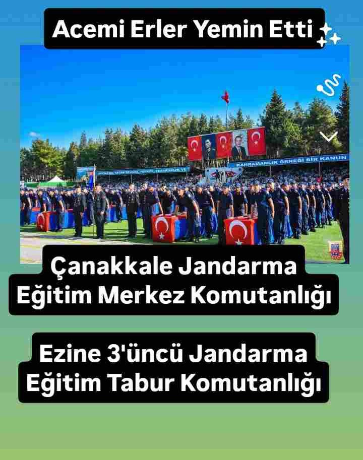 Çanakkale Jandarma Eğitim Merkez Komutanlığı ve Ezine 3'üncü Jandarma Eğitim Tabur Komutanlığı'nda Acemi Erler Yemin Etti.