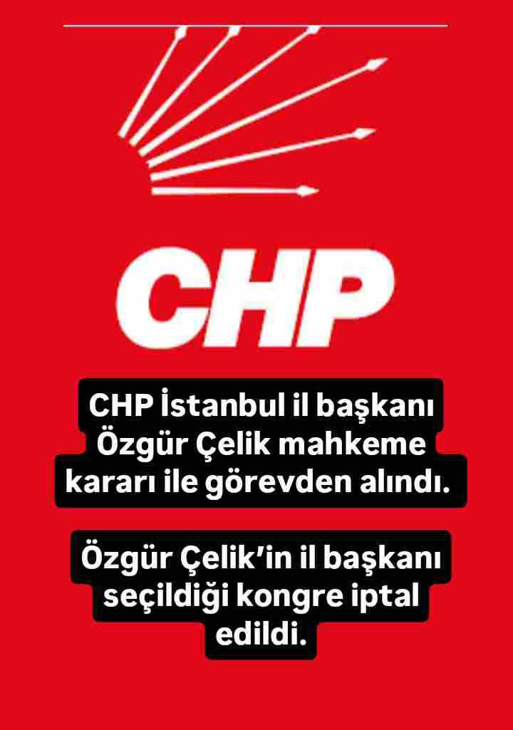 İstanbul 45. Asliye Hukuk Mahkemesi, CHP 38. Olağan İstanbul İl Kongresi'nde seçilen başkan ve yönetimin görevden uzaklaştırılmalarına, İl Başkanlığı'na geçici yönetim kurulu atanmasına karar verdi.