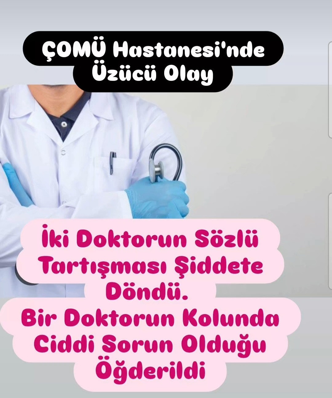 Kadın hekimin eşinin de olay yerine gelmesiyle, tartışma kontrol edilemez bir hal alarak şiddete dönüştü. Hastane idaresinin olayla ilgili olarak idari ve adli tartışma başlattığı öğrenildi.