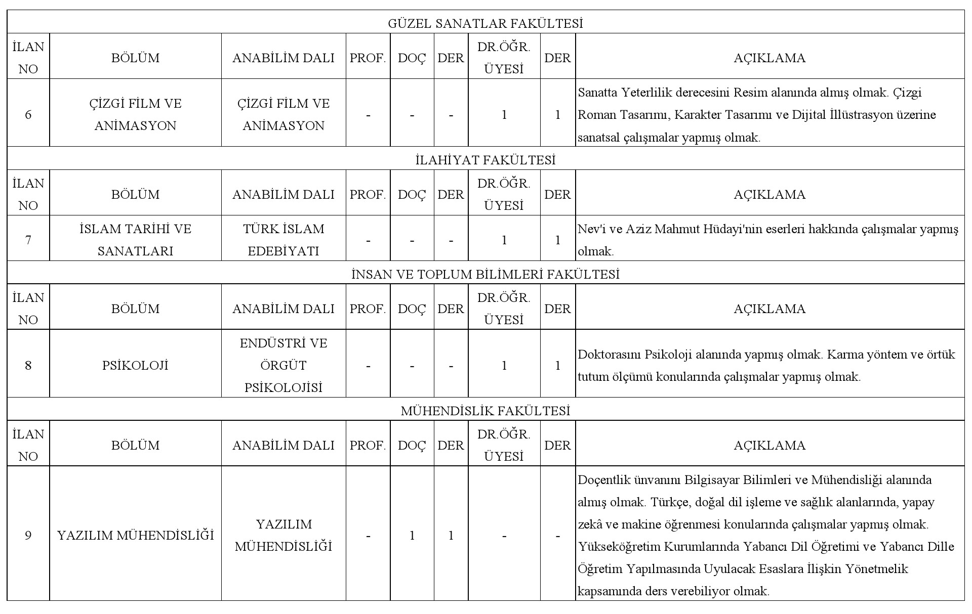 ÖĞRETİM ÜYESİ ALIM İLANI