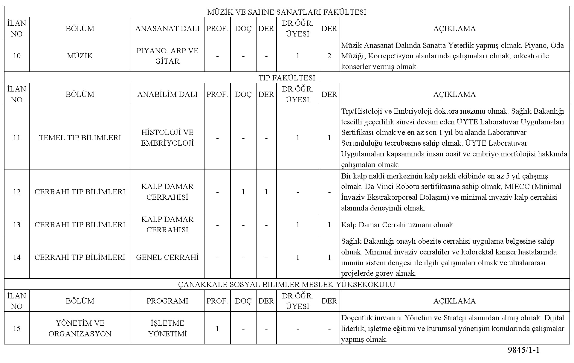 Üniversitemizin çeşitli birimlerine 2547 sayılı Kanunun 23, 24. ve 26. maddeleri, Öğretim Üyeliğine Yükseltilme ve Atanma Yönetmeliği ile Üniversitemiz Senatosunca belirlenen Öğretim Üyesi Kadrolarına Başvuru, Görev Süresi Uzatımı, Atanma ve Yükseltilme Kriterleri