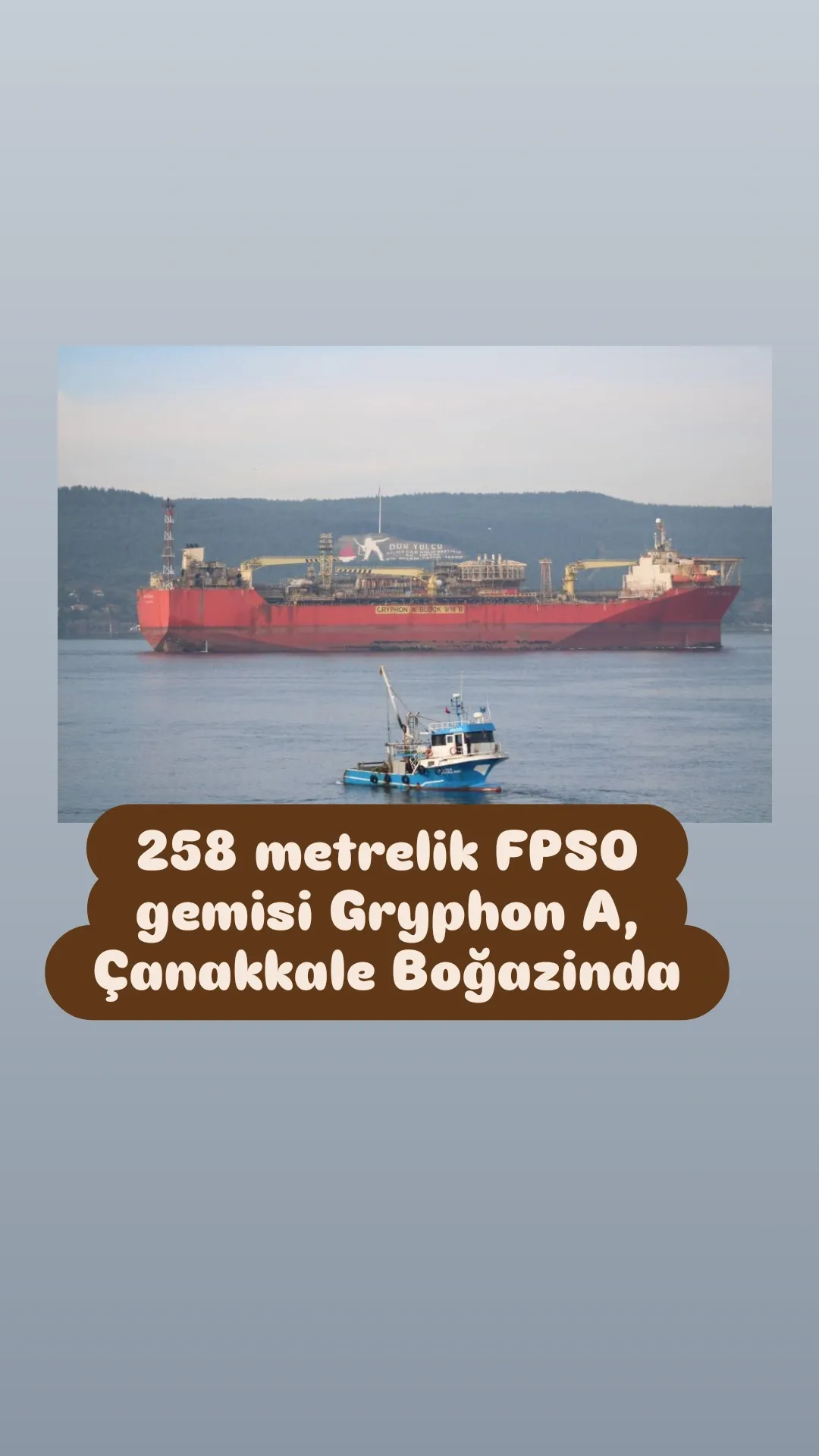 Birleşik Krallık bayraklı, 258 metre uzunluğa ve 41 metre genişliğe sahip yüzer üretim, depolama ve boşaltma gemisi 'GRYPHON A', sabah saatlerinde Çanakkale Boğazı'ndan Marmara Denizi'ne doğru geçiş yaptı. Kıyı Emniyeti'ne bağlı römorkörler eşliğinde çekilerek ilerleyen dev gemi, boğazın gemi trafiğini geçici olarak durdurdu.