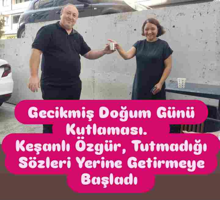 Gecikmiş Doğum Günü Kutlaması . Keşanlı Özgür, arkadaşlarına verdiği sözleri artık tutacağını söyledi. Son bir haftadır onlarca unuttuğu sözünü yerine getirdiğini söyledi.
