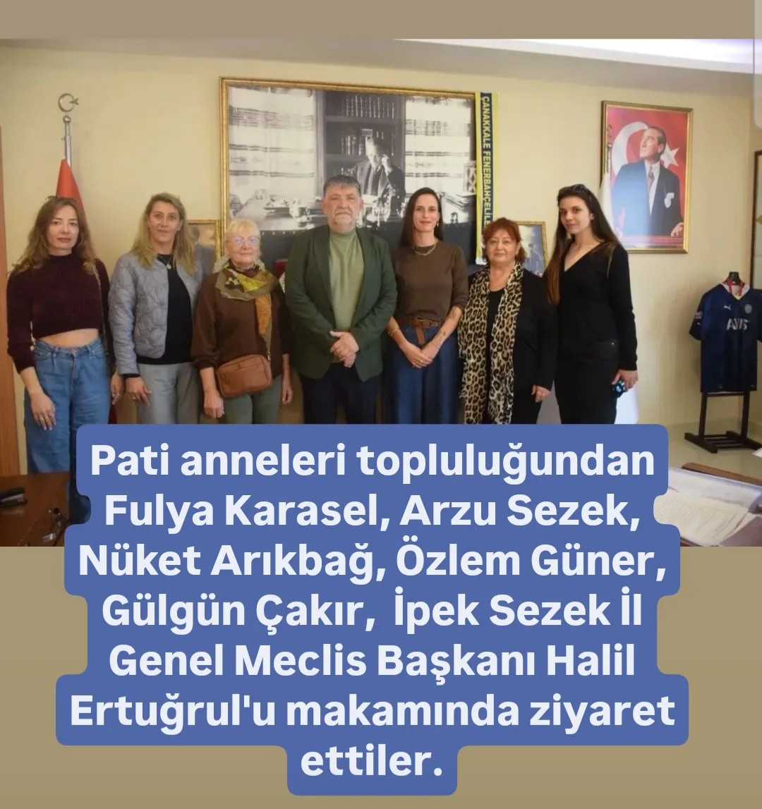Pati anneleri topluluğundan Fulya Karasel, Arzu Sezek, Nüket Arıkbağ, Özlem Güner, Gülgün Çakır, İpek Sezek İl Genel Meclis Başkanı Halil Ertuğrul'u makamında ziyaret ettiler. Ziyarette topluluk ve sokak hayvanları konularında görüşmeler yapıldı. Ziyaret sonrası İl Genel Meclis Başkanı Halil Ertuğrul ziyaretleri ve görüşleri için teşekkür etti