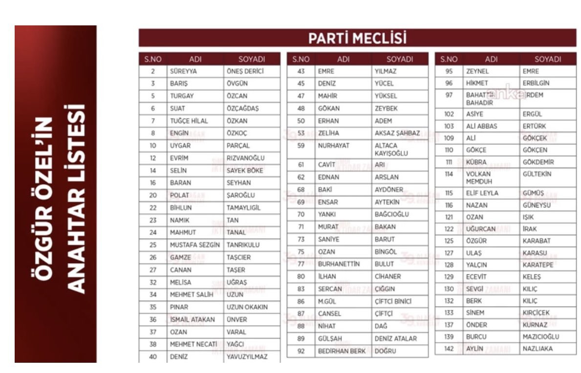 CHP Büyük Kurultayı'nda Genel Merkezin anahtar listesine Çanakkale Milletvekili Özgür Ceylan kesik yedi.