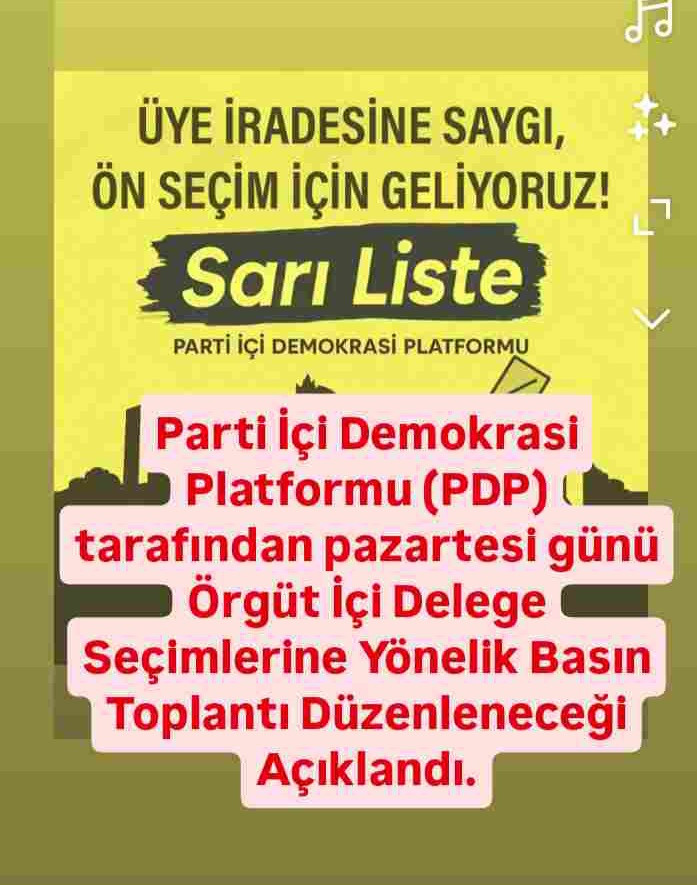 Parti İçi Demokrasi Platformu (PDP) tarafından basın toplantısı yapılacağı açıklandı.