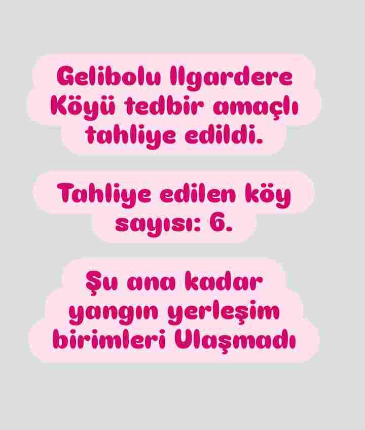 Çanakkale Valiliği'nden yapılan yazılı açıklamada," Gelibolu Ilgardere Köyü tedbir amaçlı tahliye edilmiştir. Tahliye edilen köy sayısı: 6.oldu Şu ana kadar yangın yerleşim birimlerine sirayet etmemiştir. Tahliye edilen vatandaşlarımız güvenli alanlara alınmıştır. Yangını kontrol altına almak için havadan ve karadan müdahaleye devam etmektedir."dendri.
