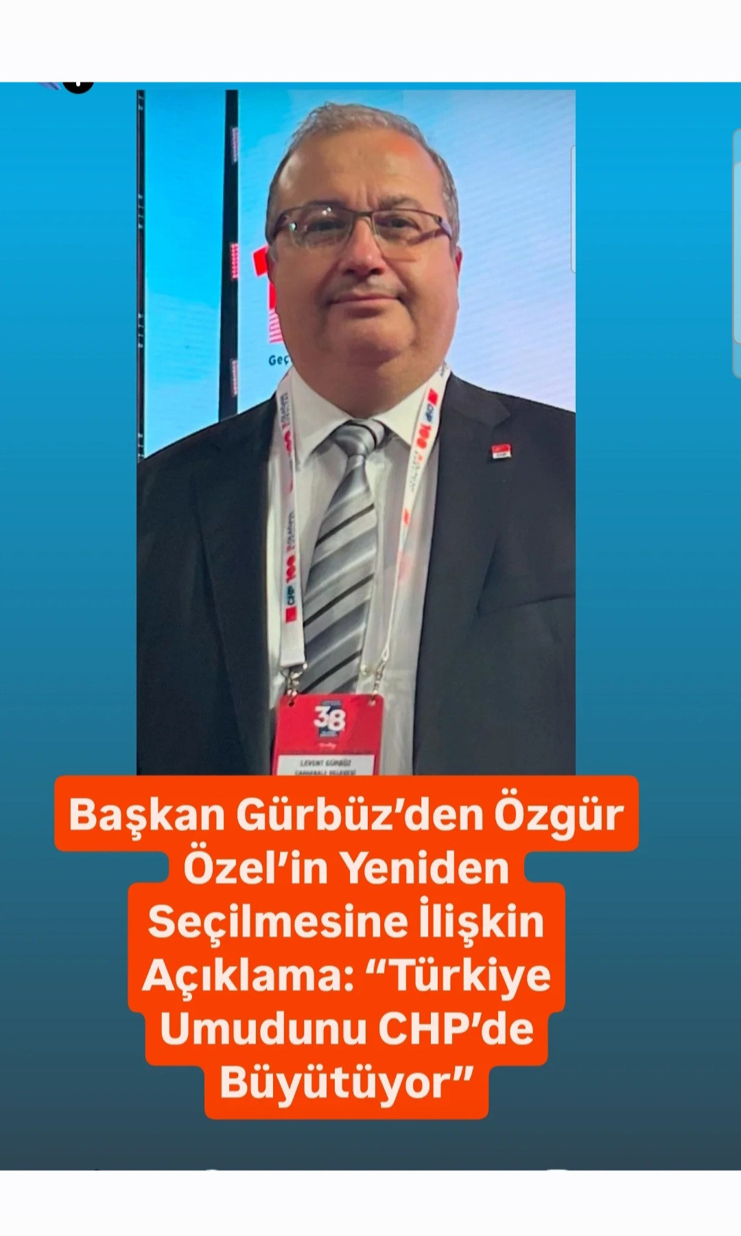 Gürbüz, açıklamasında şu değerlendirmelerde bulundu: “39. Olağan Kurultayımız, Cumhuriyet Halk Partisi’nin sadece kendi iç demokrasi gücünü değil, Türkiye’nin geleceğine dair kararlılığını da göstermiştir. Delegelerimizin tamamının oyuyla yeniden genel başkanlık görevine seçilen Sayın Özgür Özel’i yürekten kutluyorum. Bu sonuç, halkın beklentisini, toplumun değişim arzusunu ve partimizin iktidar yürüyüşünü daha da hızlandıran güçlü bir mesajdır.