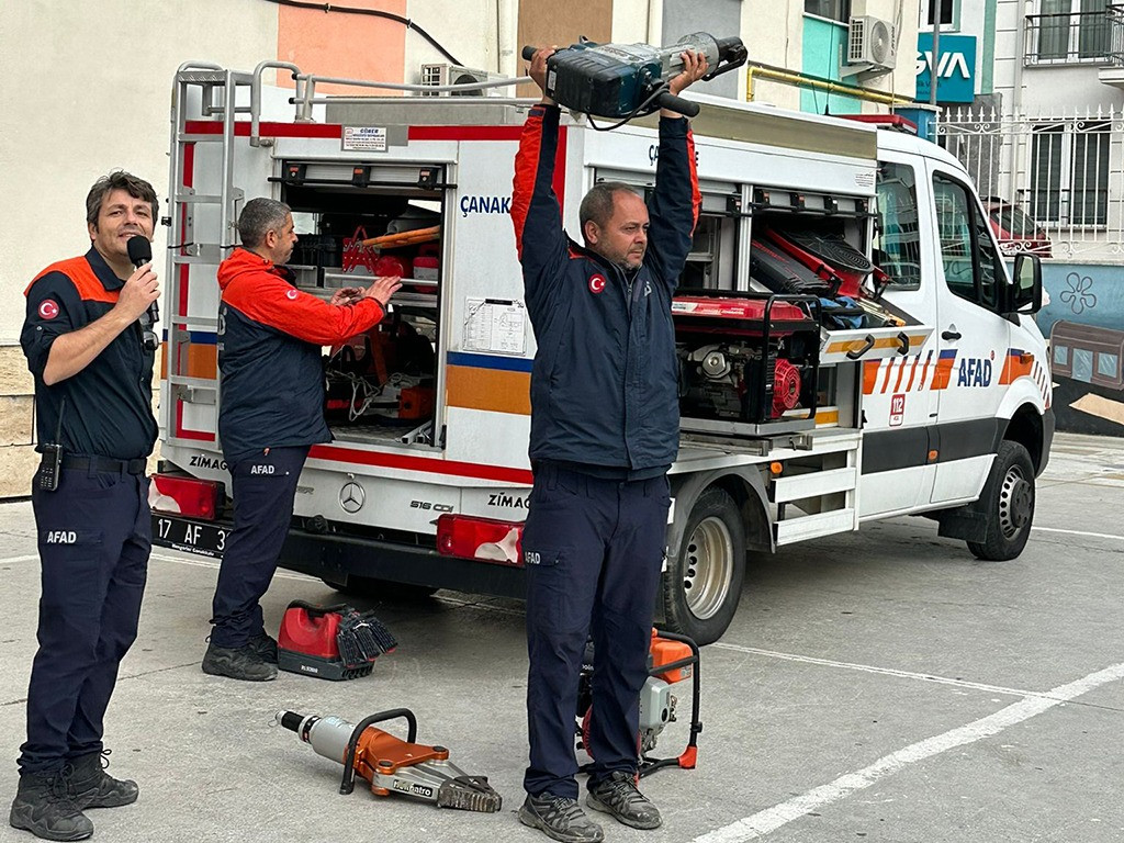 Afad Çanakkale Müdürlüğümü eğitmenlerince Çanakkale 18 Mart İlkokulunda acil durum tahliye tatbikatı yaptırıldı. Tatbikatın ardından tahliye olan öğrencilere araç ve arama-kurtarma malzemelerinin tanıtımı yapıldı.