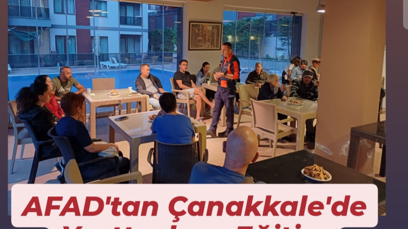 Çanakkale AFAD Müdürlüğü eğitmenleri Çanakkale'de yaşayan vatandaşlara olası afetlere karşı bilinçlendirme faaliyetler kapsamında Troia Nefes Sitesi sakinlerine "Afet Farkındalık Eğitimi" verdiği öğrenildi.
