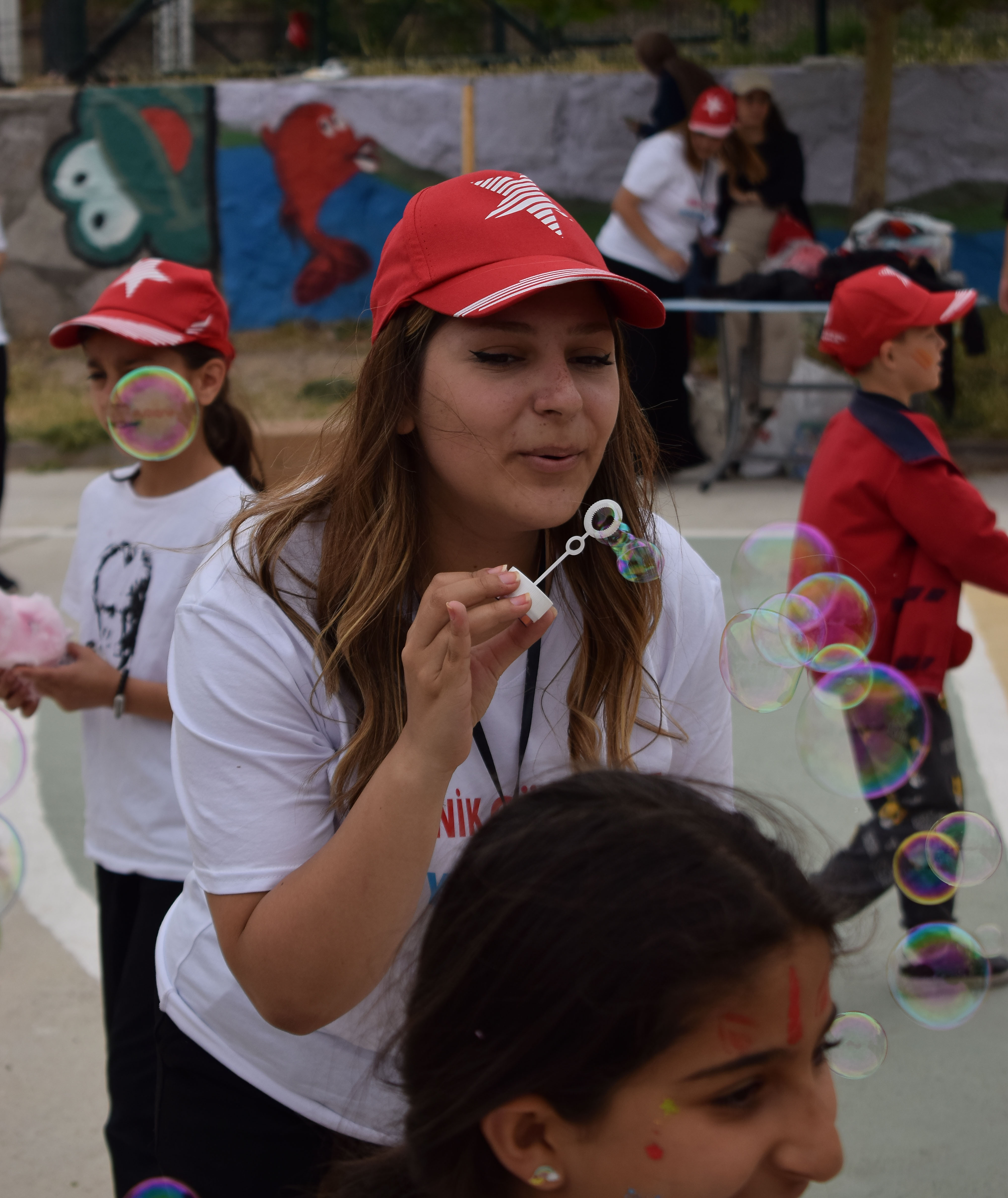 Bitirme projesi olarak planlanmasından uygulamasına tüm aşamalarına kendilerinin gerçekleştirdiği sosyal sorumluluk projesinde projeyi gerçekleştiren Halkla İlişkiler ve Tanıtım programı ile Fotoğrafçılık ve Kameramanlık programı öğrencilerine, üniversitenin farklı birimlerinden öğrenciler de gönüllü destek oldu. Minikler sinema filmini izlerken Sağlık Bilimleri Fakültesi Acil Yardım ve Afet Yönetimi Bölümü öğrencisi Ebru Şimşek, Güzel Sanatlar Fakültesi Grafik Tasarım Bölümü öğrencisi Beyzanur Yılmaz, Çanakkale Teknik Bilimler Meslek Yüksekokulu Grafik Tasarım Programı öğrencisi Rabia Gül de gönüllü olarak Akçapınar İlkokulunun oyun alanlarının boyadı.