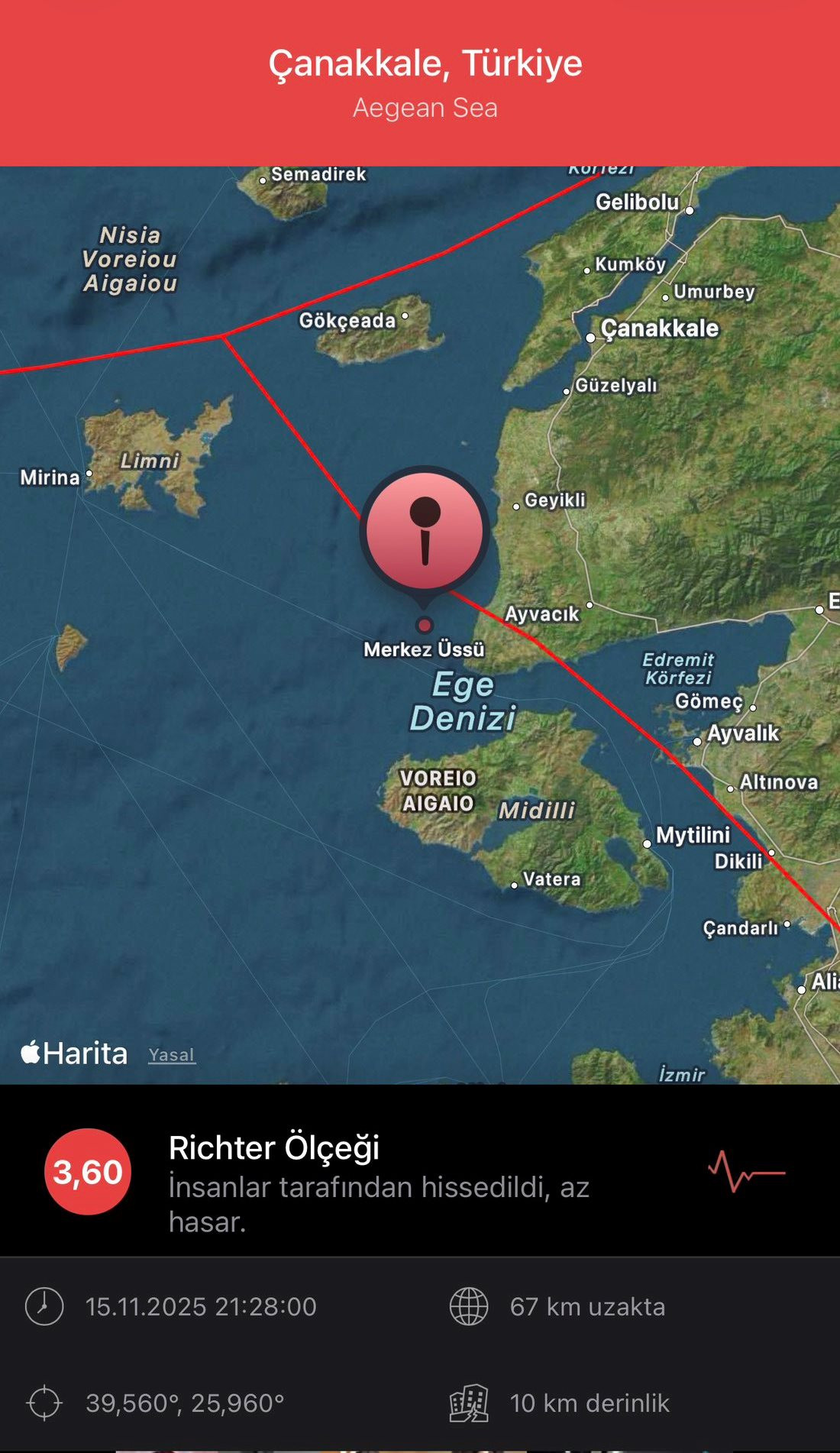 Ayvacık Açıklarında 4 Şiddetinde Deprem
