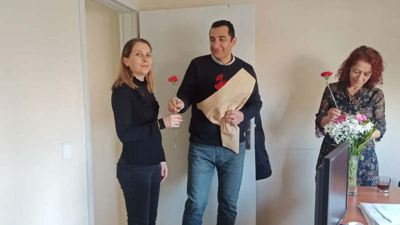 Ayvacık İlçe Sağlık Müdürü Uzm.Dr.Mehmet Salih Akçakaya ,Ayvacık'ta ki sağlık birimlerinde çalışan kadın personellerin kadınlar gününü kutladı.