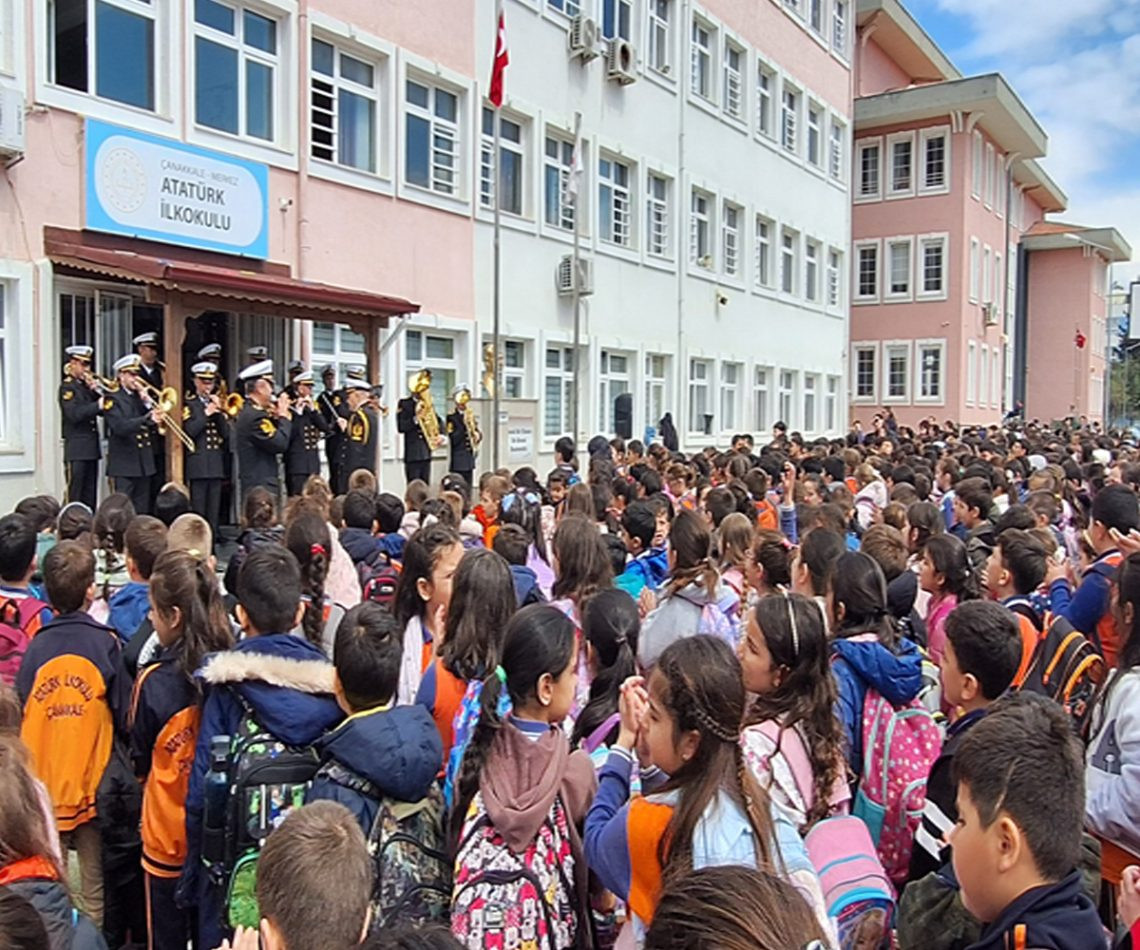 “Mehmetçik tarafından ay yıldızlı bayrağımızın gölgesinde çalınan her nota, geleceğimizin teminatı çocuklarımızın kalbine nakşedilir. Çanakkale Boğaz ve Garnizon Komutanlığımızın Bandosu, Çanakkale Atatürk İlkokulunda bando konseri ve bayrak töreni düzenledi
