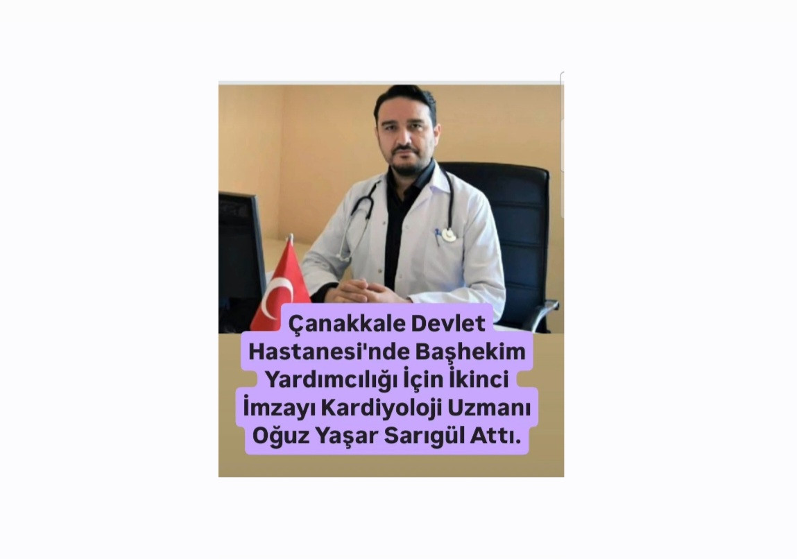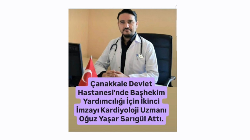 Çanakkale Devlet Hastanesi'nin genç ve başarılı Kardiyoloji Uzmanı Dr. Oğuz Yaşar Sarıgül, başhekim yardımcılığı için imzayı bugün attığı öğrenildi.