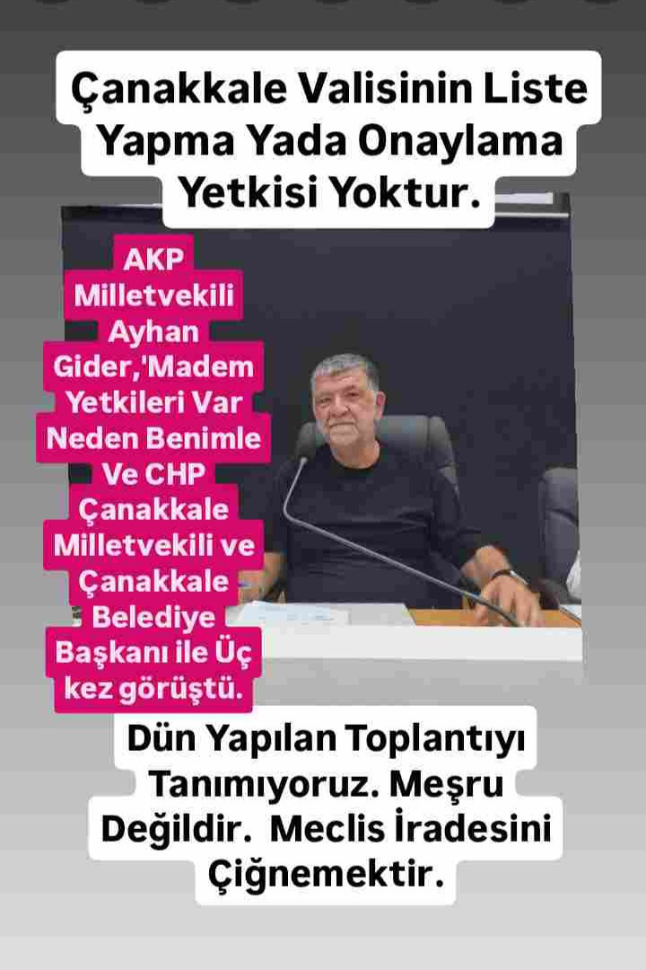 AKP Çanakkale Milletvekili Ayhan Gider, hem İl Genel Meclisi Başkanı olarak benimle hemde CHP Çanakkale Milletvekili İsmet Güneşhan ve CHP Çanakkale Belediye Başkanı Muharrem Erkek ile neden üç kez görüşerek, üye sayısını tartıştı?