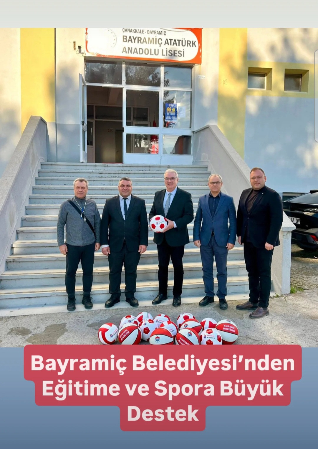Malzeme dağıtım seferberliğinin ilk durağı Bayramiç Atatürk Anadolu Lisesi oldu. Belediye Başkanı Hasan Cem Atılgan, okulu ziyaret ederek spor toplarını öğrencilere bizzat teslim etti. Öğrencilerle bir süre sohbet eden Başkan Atılgan, gençlerin spora olan ilgisinden büyük memnuniyet duyduğunu ifade etti.
