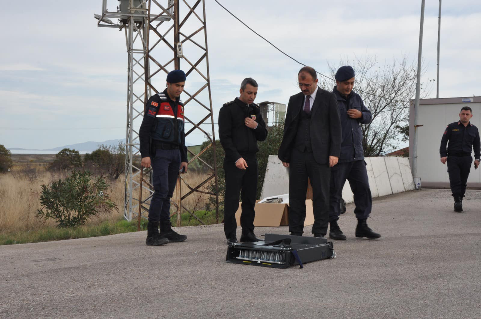 Güvemalan Yol Kontrol ve Uygulama Noktasında incelemelerde bulunanan Biga Kaymakamı Erdinç Dolu, İlçe Jandarma Komutanı Üsteğmen Hüseyin SERVİ’den bilgi aldı.