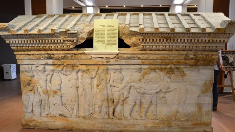 Anadolu’da bulunan figürsel anlatımlı en eski lahit olduğu bilinen yaklaşık 2600 yıllık Polyksena Lahdi, Troya Müzesi’nde sergilenen en önemli eserler arasında yer alıyor.
