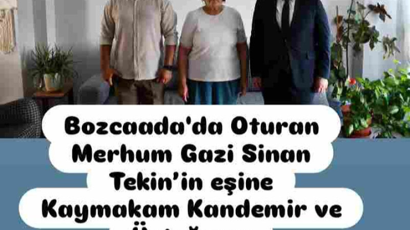 Bozcaada Kaymakamı Yunus Emre Kandemir, Kurban Bayramı dolayısıyla Merhum Gazi Sinan Tekin’in eşi Gönül Tekin’e bayram ziyaretinde bulunarak bayramını kutladı. Jandarma Komutanı Ütğm. Yalçın Gönülalan eşlik etti.