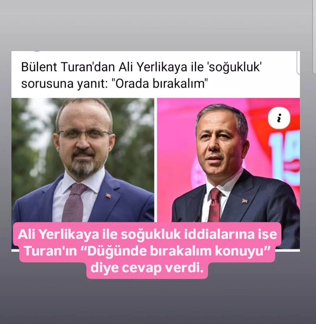 Ali Yerlikaya ile soğukluk iddialarına ise Turan'ın “Düğünde bırakalım konuyu” diye cevap verdi.