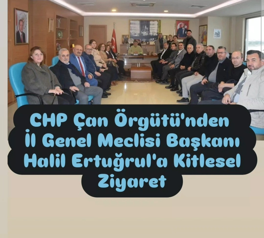 Çan Belediye Başkanı Harun Arslan , CHP Çan İlçe Başkanı İlhan Demiral, CHP İlçe Kadın Kolları Başkanı Emine Çetin , CHP İlçe Gençlik Kolları Başkanı Kerem Öner, İl Genel Meclis Üyeleri İsmail Ünal ve Ramazan Mesut Özyurt, Çan Belediye Meclis Üyeleri, İlçe Örgütü ile Kadın Kolları ve Gençlik Kolları örgütü İl Genel Meclis Başkanı Halil Ertuğrul’u makamında ziyaret ettiler.