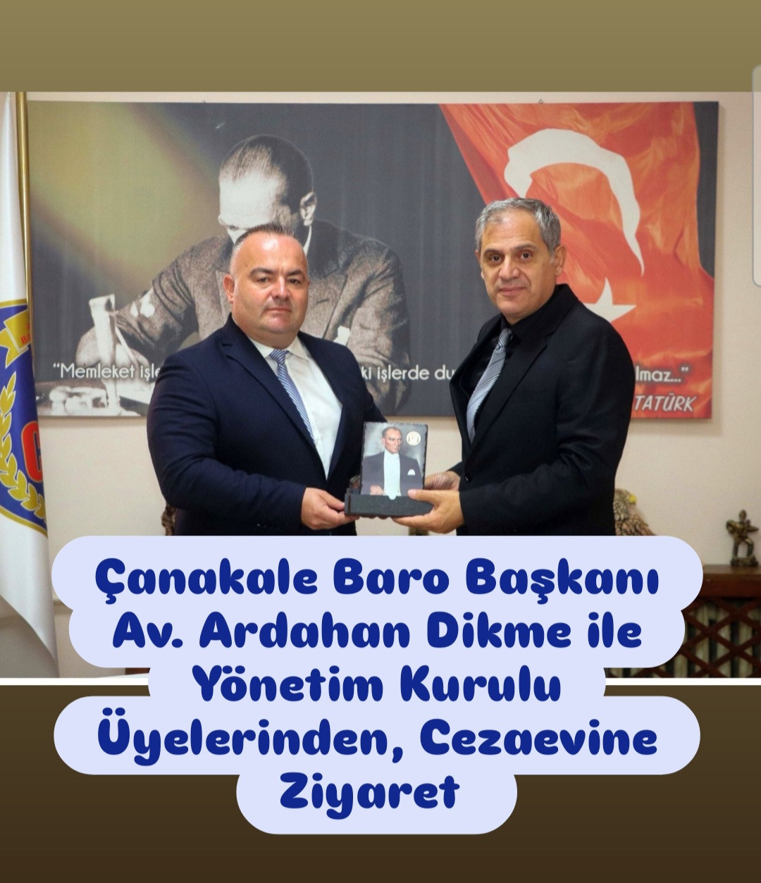 Çanakkale Baro Başkanı Av. Ardahan Dikme ile Yönetim Kurulu Üyeleri Av. Eyüp Algül, Av. Giray Koray, Av. Harun Bulut, Av. Cem Özgider ve Av. Özgen Bulut, görevine yeni başlayan Çanakkale E Tipi Kapalı Ceza İnfaz Kurumu Müdürü Zeki Kerim’e ziyarette bulundu.