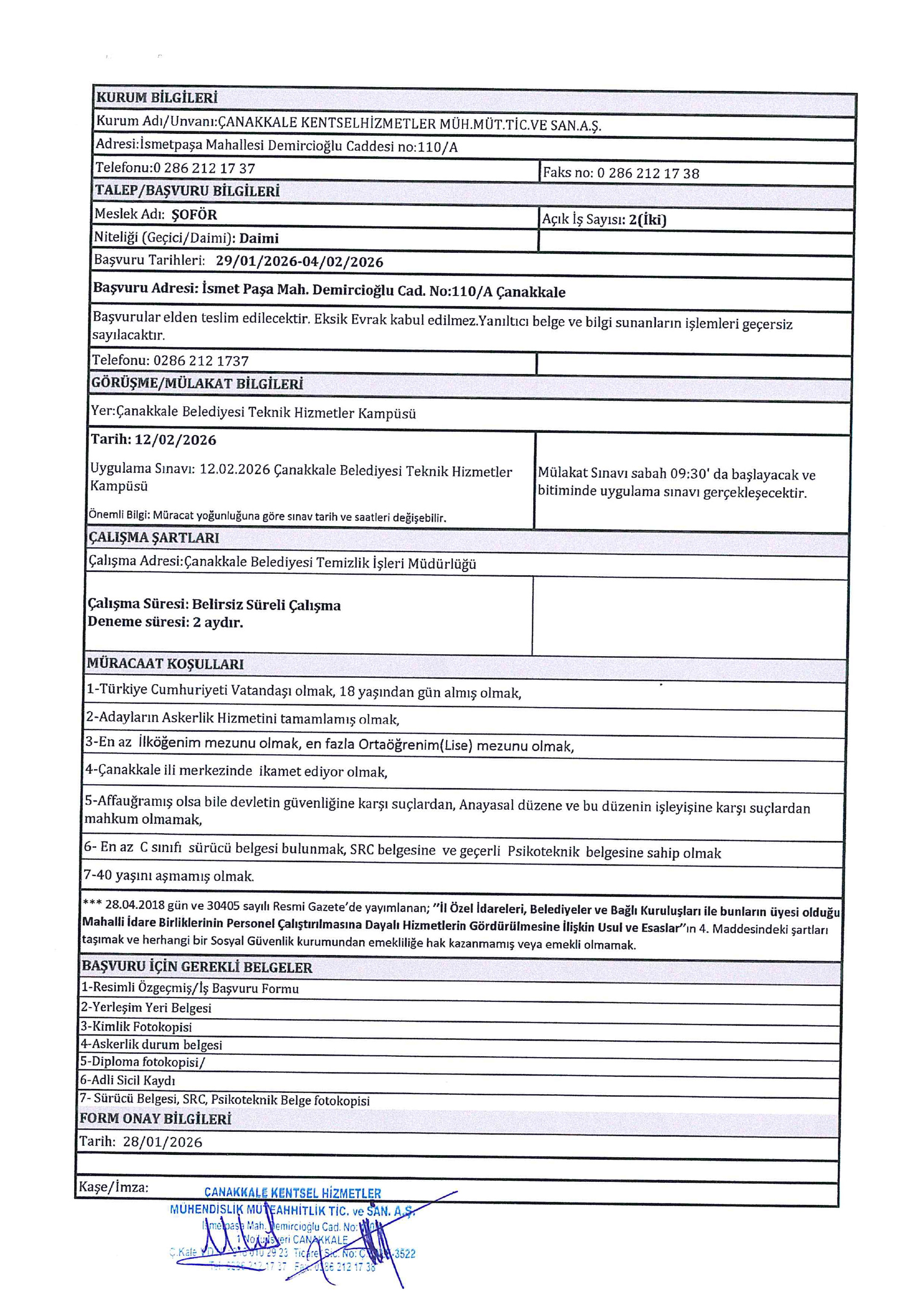 Çanakkale Hizmet Grupları Geçici 7 İşçi Alacak. Son başvuru tarihi 4 Şubat 2026