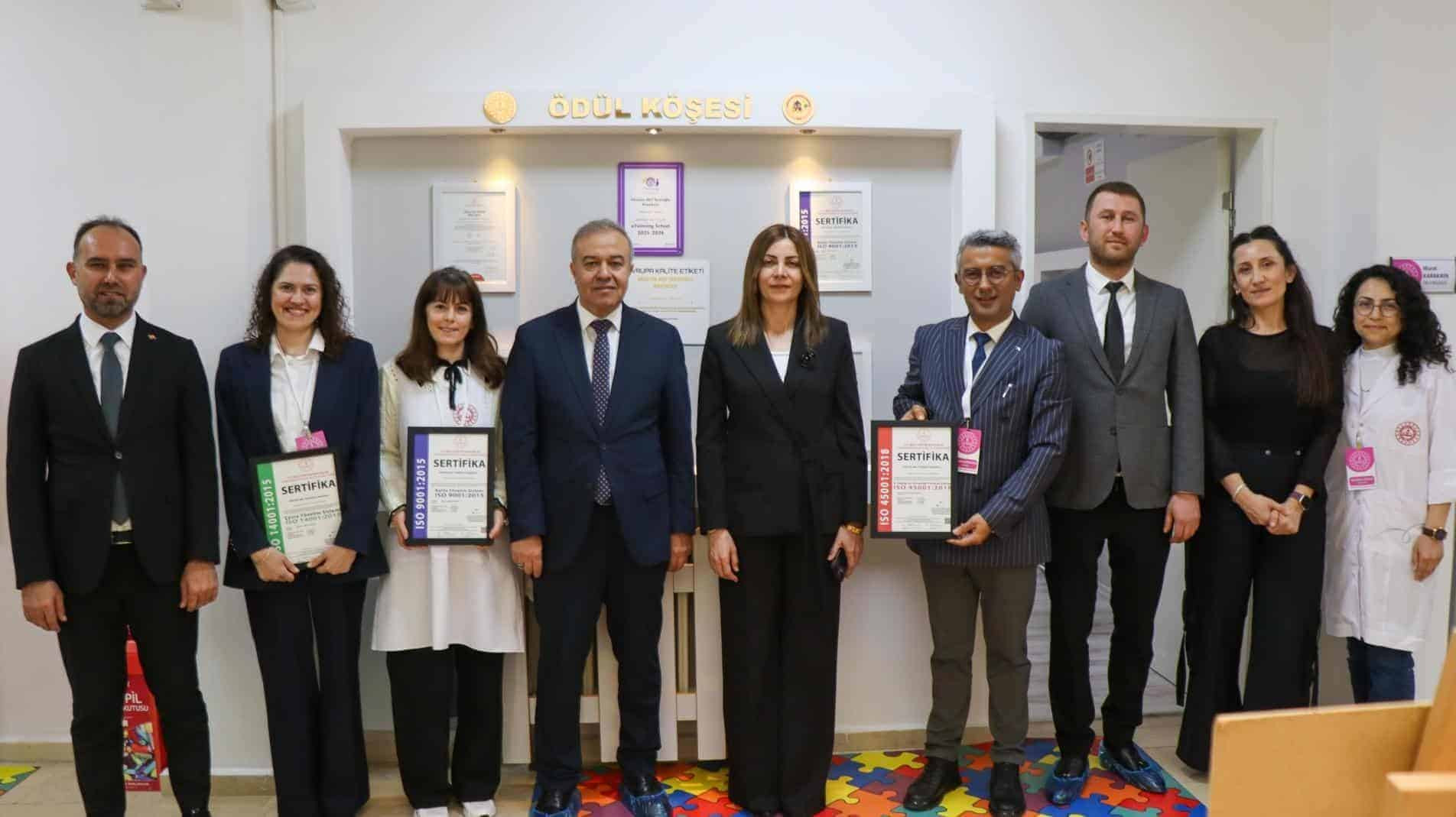 TSE-ISO belgelerini MEB Temel Eğitim Genel Müdürü Yardımcısı Şemsettin Durmuş ve Çanakkale İl Millî Eğitim Müdürü Mine Hayta elinden alan okul müdürü Murat Karakaya “Tüm eğitim personelimiz, velilerimiz ve dış paydaşlarımızla beraber; Çanakkale eğitim ve öğretiminde kalite yönetimi, sürdürebilir çevre yönetimini ve iş güvenliği hususlarında tüm TSE standartlarına uygun bir eğitim sunan Çanakkalenin tek okulu olmanın haklı gururunu yaşıyoruz.”dedi.
