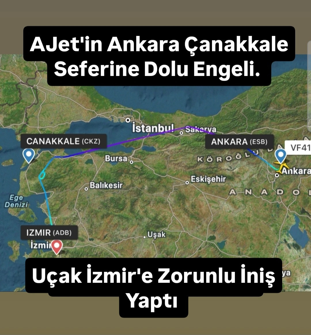 AJet’in VF4126 Ankara-Çanakkale seferini gerçekştirmek için havalanan TC-JFE tescilli Boeing 737 uçağı, henüz bilinmeyen sebeple İzmir Adnan Menderes Havalimanı’na divert etti