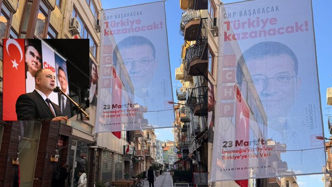 CHP Çanakkale İl ve Merkez İlçe Başkanlığı’nın bulunduğu Tarla Sokak’a, gözaltına alınan İBB Başkanı Ekrem İmamoğlu’nun afişi asıldı.