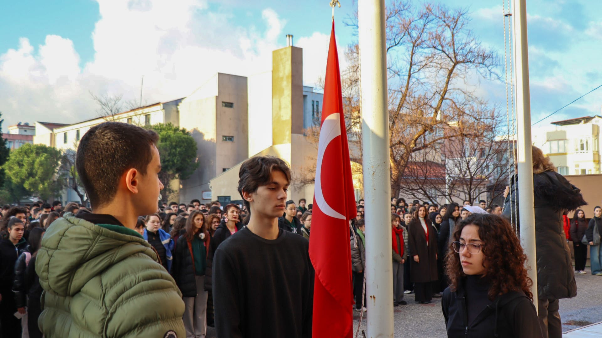 Bu kapsamda Çanakkale İl Millî Eğitim Müdürü Mine Hayta, Çanakkale Anadolu Lisesinde gerçekleştirilen saygı duruşuna katılarak deprem şehitleri öğrenciler ile andı.