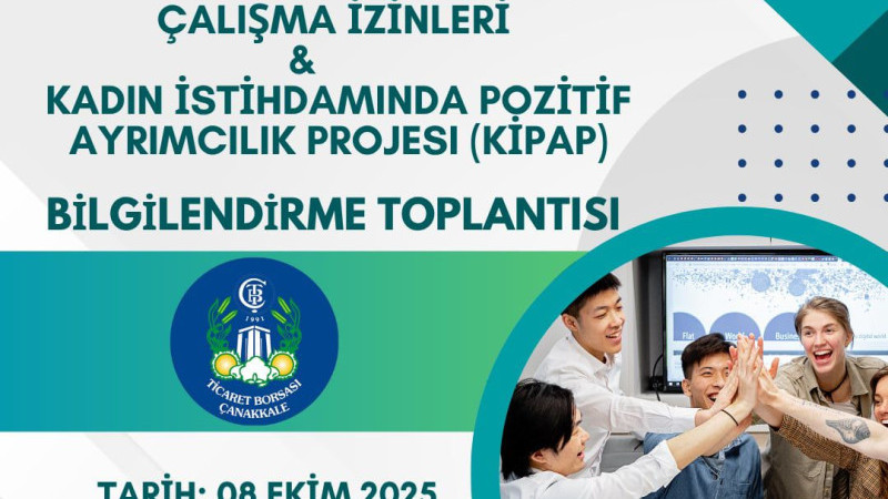Çanakkale Ticaret Borsası ev sahipliğinde, Çanakkale İŞKUR İl Müdürlüğü, Çanakkale Valiliği İl Göç İdaresi Müdürlüğü ve Sosyal Güvenlik Kurumu İl Müdürlüğü iş birliğiyle “Yabancı İstihdamında Çalışma İzinleri & Kadın İstihdamında Pozitif Ayrımcılık Projesi Bilgilendirme Toplantısı” gerçekleştirilecektir.