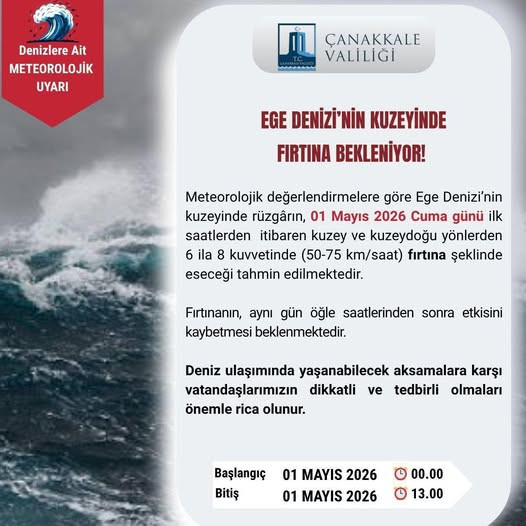 Uyarı: Deniz ulaşımında yaşanabilecek olumsuzluklara karşı vatandaşlarımızın dikkatli ve tedbirli olmaları önemle rica olunur.
