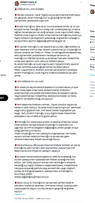 CHP eski Parti Meclisi Üyesi, gazeteci Mehmet Faraç yayımladığı yazıda şok iddialarda bulundu.