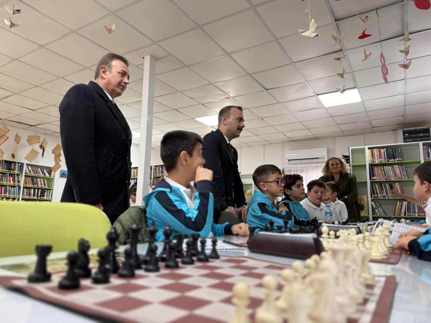 Eceabat Kaymakamı Kerem Yenigün, İlçe Halk Kütüphanesi bünyesindeki satranç kursunu ziyaret ederek öğrencilerle buluştu.