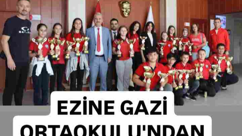 Çanakkale İl l Milli Eğitim Müdürü Mine Hayta, Türkiye'de okul mevcuduna göre; en fazla lisanslı öğrencisi olan, en fazla branşta ve en fazla takımla yarışmaya katılan, en fazla kupa ve madalya alan eğitim kurumu olarak Türkiye rekoru kıran Gazi Ortaokulu yönetici ve öğrencileriyle buluştu.