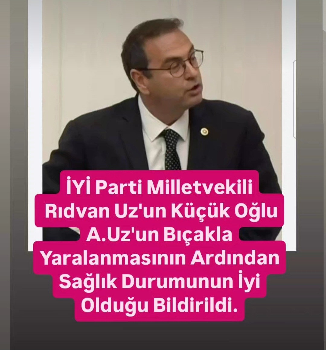 İYİ Parti Çanakkale Milletvekili Rıdvan Uz'un küçük oğlu A.Uz'un 15-16 yaş grubunda ki gençlerin kavgasını ayırırken bacaklarına bıçak darbesi aldığı sağlık durumunun iyi olduğu öğrenildi.