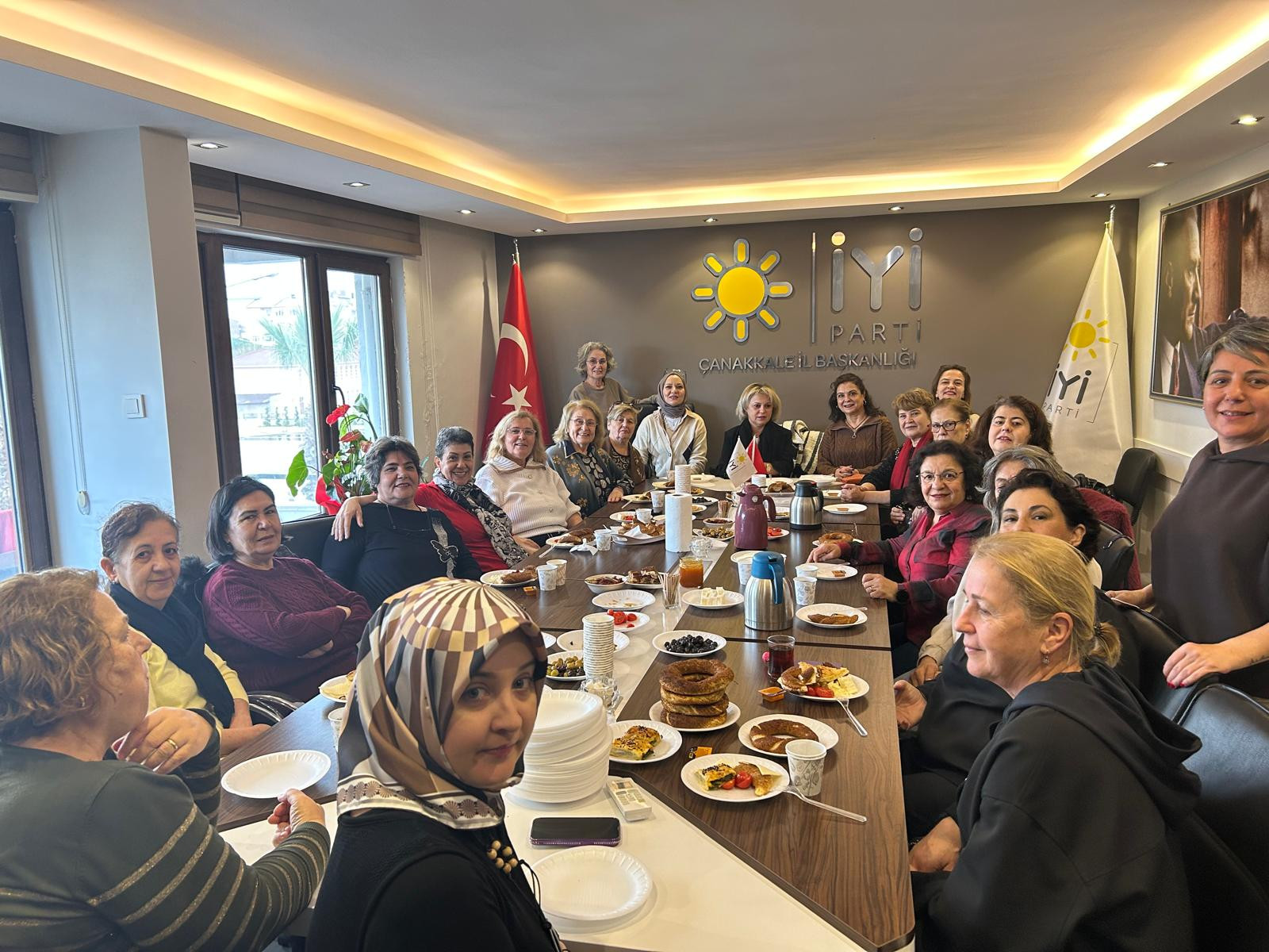 İYİ Parti Çanakkale Teşkilatı’nda kadın kolları, İl Kadın Kolları Başkanı Nuray Kılıç Al ve Merkez İlçe Kadın Kolları Başkanı Demet Sağır öncülüğünde düzenlenen kahvaltı organizasyonunda bir araya geldi. İl binasında gerçekleştirilen buluşma, partili kadınların yoğun katılımıyla samimi bir atmosferde gerçekleşti.