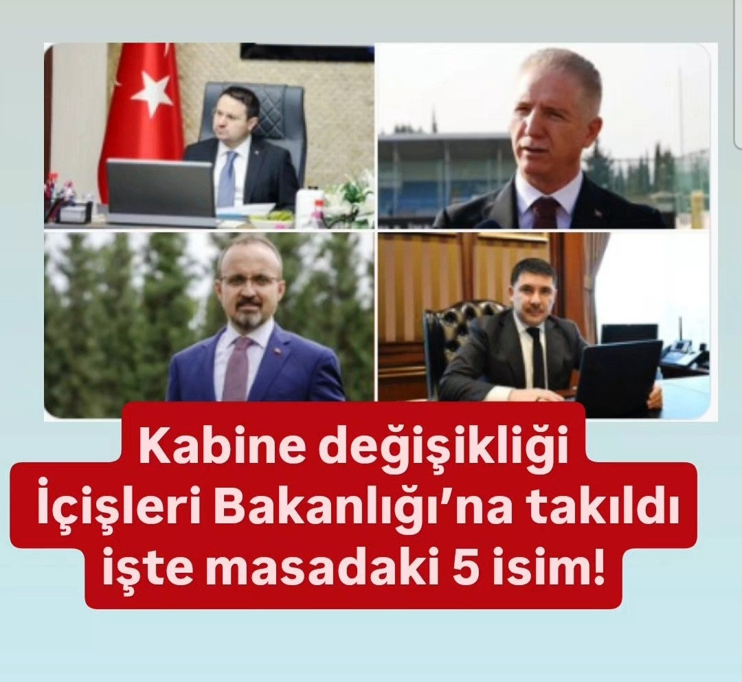 Cumhurbaşkanı Recep Tayyip Erdoğan’ın uzun süredir planladığı kabine revizyonunun, İçişleri Bakanlığı’na yapılacak atama nedeniyle geciktiği iddia edildi. Yeni bakanın Davut Gül, Akın Gürlek, Bülent Turan, Muhterem İnce ve Hasan Doğan arasından bir isim olacağı düşünülüyor.