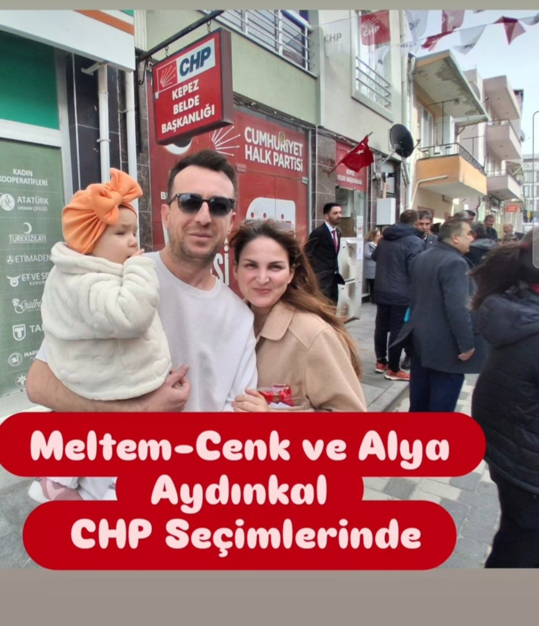 Kepez'in Genç Çifti Seçimde. Meltem Aydınkal ve Eşi Cenk Aydınkal küçük kızları Alya ile birlikte partilerinin delege seçimine oy kullanmaya gittiler.