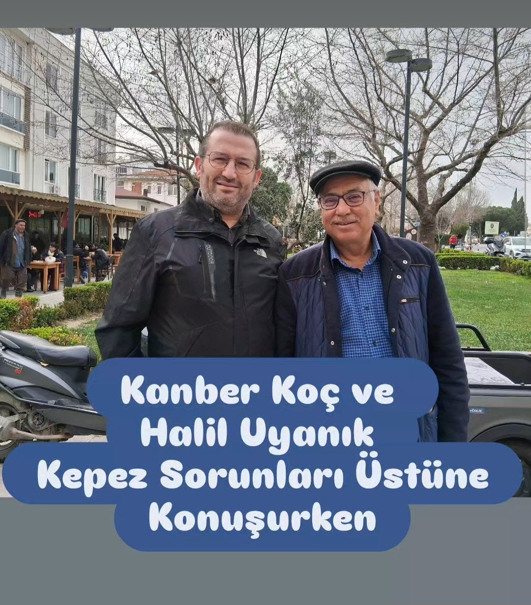 CHP'nin genç kuşak politikacılarından Kanber Koç ve İYİ Partili Halil Uyanık, Kepez Maydanı'nda beldenin sorunları üzerine görüş alışverişinde bulundular.