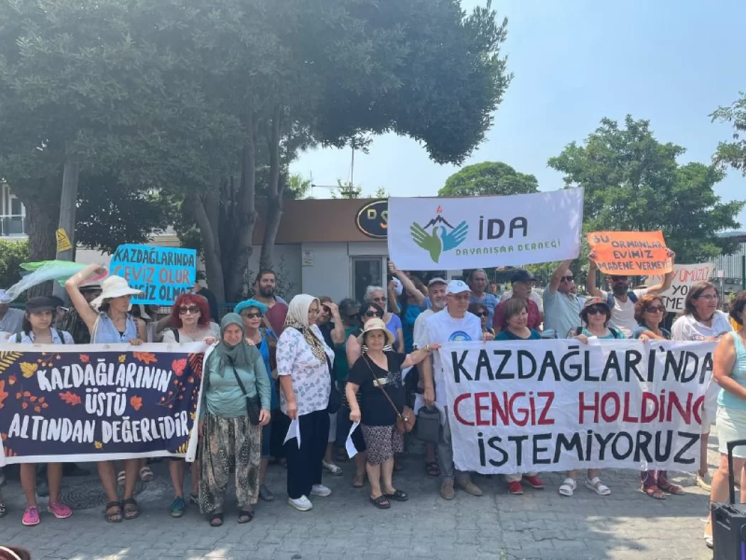 Kazdağları Ekoloji Platformu Çanakkale DSİ önünde yaptıkları eylemler Cengiz Holdinge, 'Kazdağlarınından elini çek" çağrısı yapıldı.