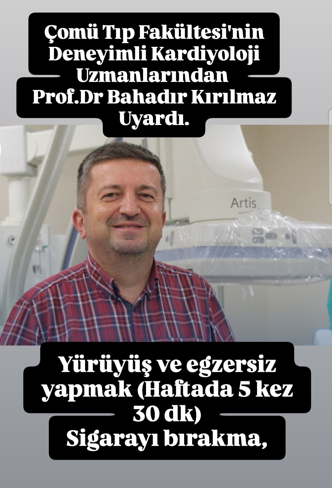 ÇOMÜ Tıp Fakültesi Kardioloji Ana Bilim dalı Başkanı Prof.dr. Bahadır Kırılmaz kapml krizine karşı alınacak yaşamsal önemleri sıraladı.