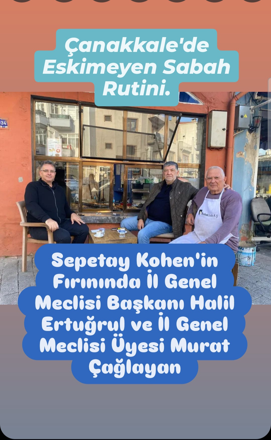 Çanakkale İl Genel Meclis Başkanı Halil Ertuğrul İl Genel Meclis Üyesi Murat Çağlayan ile birlikte Sepetay Kohen ustayı fırınında ziyaret ettiler.